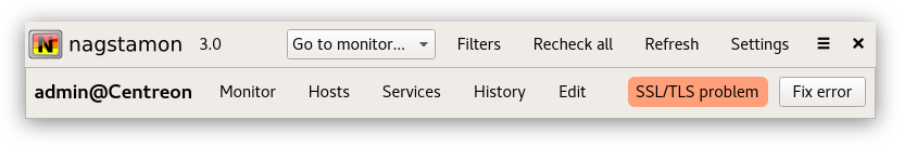 Since latest version 3.0 Nagstamon checks the validity of the monitor server’s certificate as default. This check can be disabled, but many users will see an error message in their Nagstamon status window when first starting:
